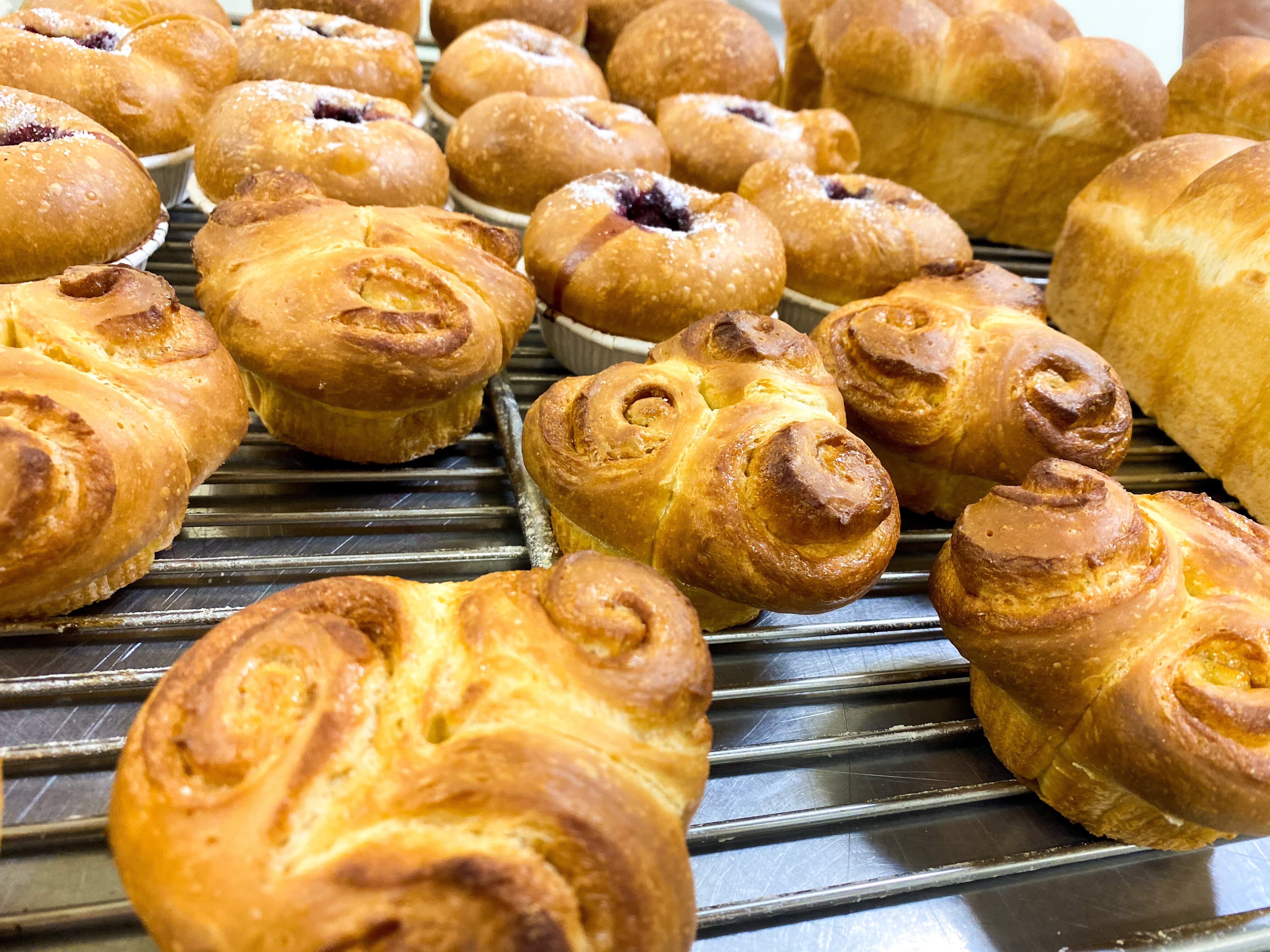 トマトチーズ、地鶏バジル、ウインナーロール、十勝つぶあんぱん、こぼれとうきび、ウインナーロール、ローズマリーチーズ、焼きカレー、マスカルポーネハニー、生ハムフォカッチャ、シュガーBON BON、チョコBON、バゲットなど